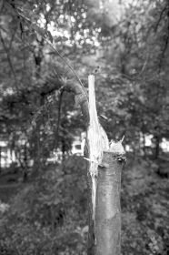 记者凑近一看,有两个袋子装满紫叶李,一个袋子装着杨梅。“这个能吃吗?”身旁的中年女子说,袋中的杨梅要比水果超市小,但口感差不多,都是沿路采摘的。沿人行道西行,记者发现沿途一公里范围内的紫叶李,超过一半的树有被折断树枝的痕迹。在树下及人行道上随处可见残叶烂果。