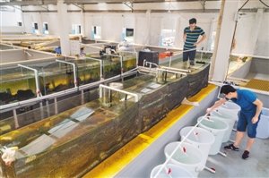 昨天上午,在大鹏新区国际生物谷,海洋生物产业园区中试基地。图为珊瑚的“产房”与“育婴房”。