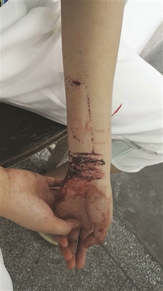 何某手腕处的伤痕。