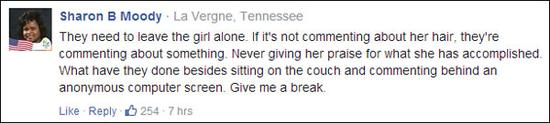 大家放过这个女孩吧。你们不是抱怨她的发型,就是抱怨其他事,却永远不会为她取得的成绩而骄傲。可是你们又做了什么呢?不过是坐在沙发上当键盘侠罢了。