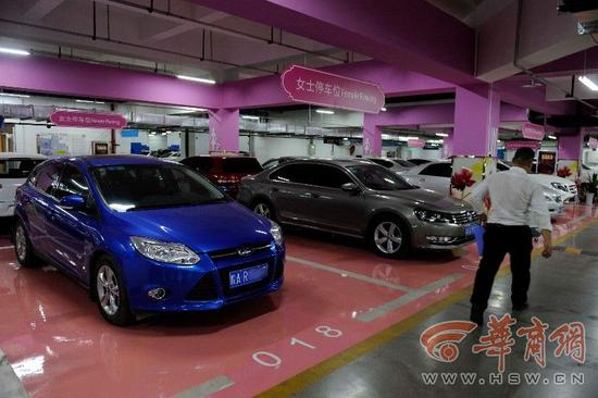 商场推出女司机专用车位 颜色粉嫩区域大(图)