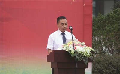 洪福老年公寓总经理左自钢在周年庆典上致词。
