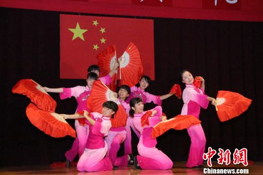 图为横滨山手中华学校同学们在庆典上表演精彩的民族舞蹈节目。 尹法根 摄