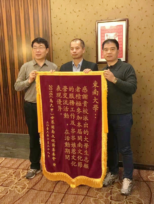 会见结束时,黄文庆馆长代表“世界闽南文化节”筹委会向东南大学赠送了锦旗,并代表马六甲侨界领袖拿督