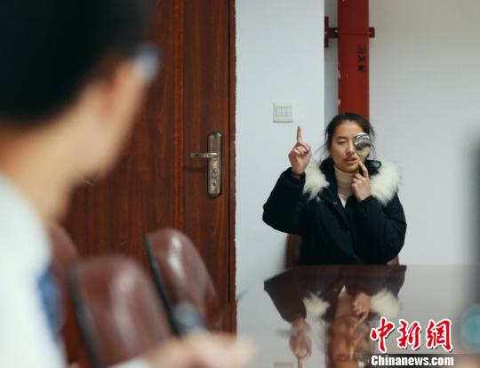 ????报考女生在进行视力体检。 王龙志 摄