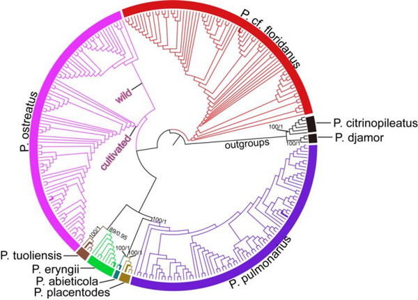 侧耳复合群(Pleurotus ostreatus species complex)是我国栽培最为广泛且非常重要的食药用真菌,商品名一般统称“平菇”。这个复合群的物种个体形态可塑性强,易受环境条件影响而出现各种表型,分类困难而混乱。如何精准构建“平菇”家谱并快速准确地鉴别其中的物种,是生产中必须解决的问题。
