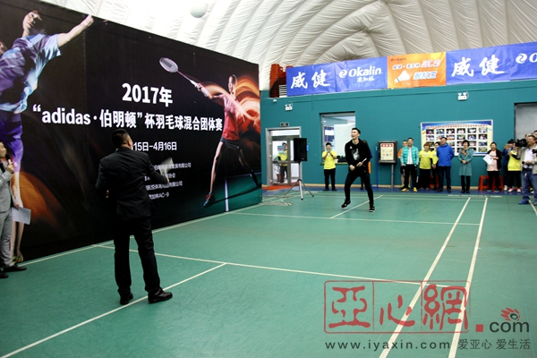 亚心网讯 ?4月15日,2017“adidas·伯明顿”杯羽毛球混合团体赛在杨军羽毛球俱乐部儿童公园青少年羽毛球运动中心火热开战。此次比赛由乌鲁木齐伯明顿体育发展有限公司主办、乌鲁木齐市羽毛球协会协办、吸引了近300名乌鲁木齐及其周边城市的羽球高手,在乌市掀起了一股火热的羽球之风。本次比赛邀请到神秘嘉宾可兰白克亲临现场。