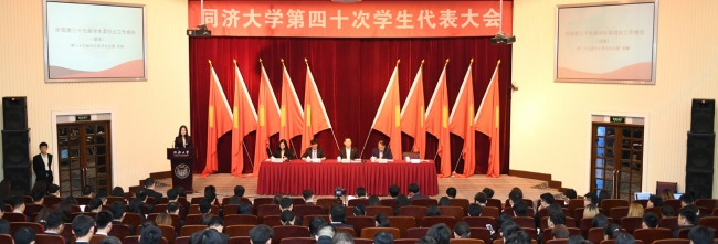 ????? 4月15日,同济大学第四十次学生代表大会在四平路校区逸夫楼一楼报告厅召开,校党委书记杨贤金,校党委副书记徐建平,学生处、留学生办公室、保卫处、校团委等单位负责人出席了本次大会。来自全校各院系的学生代表共计280余人参会。复旦大学、上海交通大学、南京大学等兄弟高校学生组织代表也应邀与会。上海市学生联合会主席团代表王峰为大会致辞。