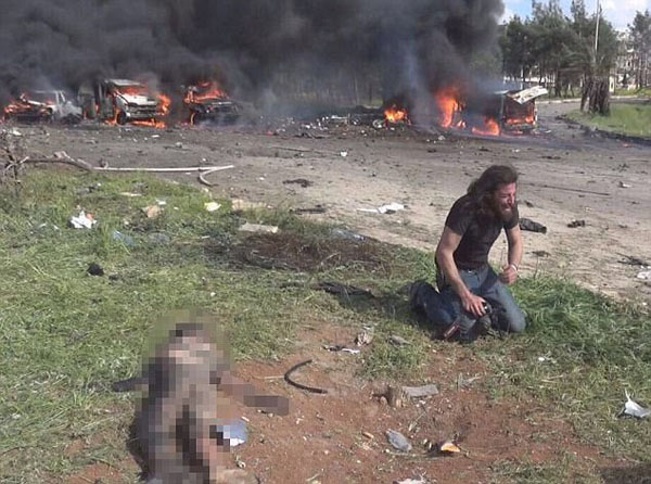叙利亚摄影师爆炸现场抢救受伤儿童 跪地痛哭