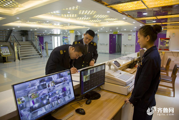 凌晨1点多,当所有乘船旅客进入梦乡,林旭强来到客服部巡查。作为一船之长,事无巨细,船上的大大小小的事都由林旭强负责。齐鲁网记者 孙长征 张伟 摄