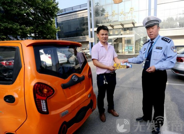 济南市中区挂出首张电动三轮车车牌 驾驶需D证