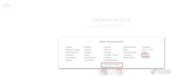 古驰和爱马仕的“国家”选项中,没有台湾↓