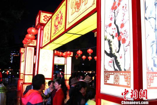 ????图为国家级非物质文化遗产湟源排灯在“中国西部排灯之乡”青海省湟源县正式点亮。 张添福 摄