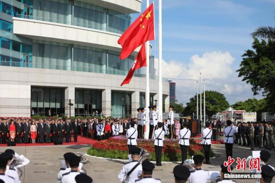 7月1日,香港特别行政区政府在金紫荆广场举行升旗仪式,庆祝香港回归祖国20周年。中新社记者 谢光磊 摄