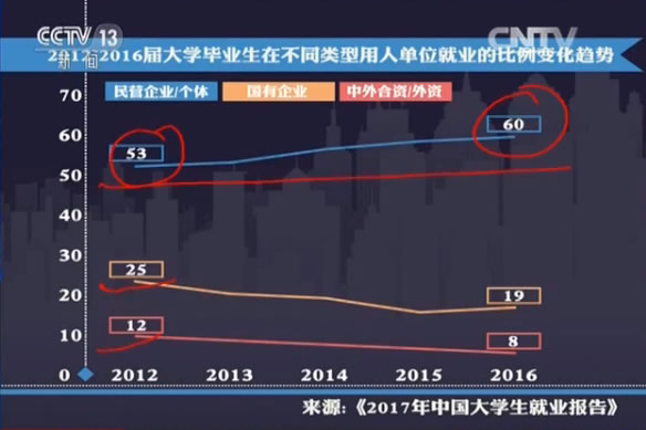 3、 这一升两降,这些变化恰恰反映出这几年,外企、国企招聘放缓对大学生就业产生的影响,而民营企业对大学生就业的支撑越来越重要。