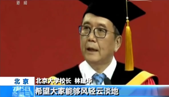 北京大学校长 林建华:我相信从这里走出去的北大人,在任何环境中都能够坚守自己的价值判断,守住底线,希望大家能够风轻云淡的面对成功与失败……