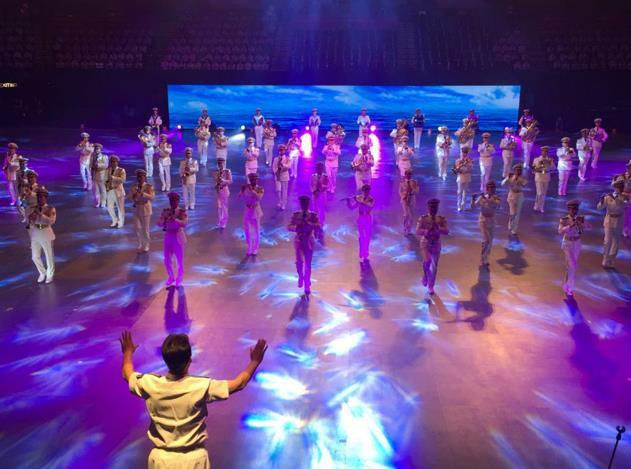 为庆祝香港回归祖国暨特区政府成立20周年,国际军乐汇演13日晚在香港红磡体育馆隆重举行。