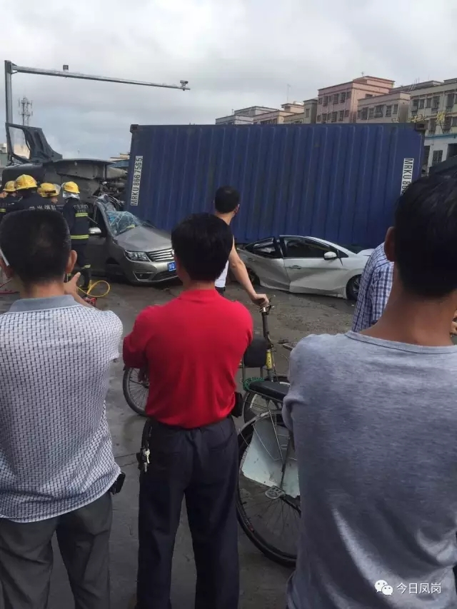 警方最新通报!东莞凤岗发生惨烈车祸,大货柜车侧翻,两小车瞬间被压扁!
