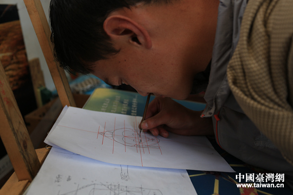 学习唐卡绘画的学生。(中国台湾网 李宁 摄)