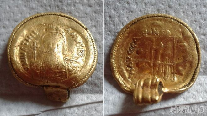 北京时间8月19日,据英国广播公司(BBC)报道,一枚由拜占庭硬币铸造而成的罕见的六世纪黄金吊坠,在1500多年后被一个金属探测专家发现。