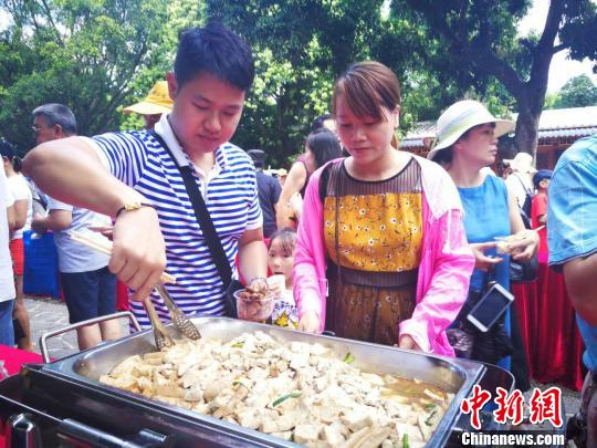 中新网海口8月20日电 (记者 李宇凡)8月20日,海口市秀英区石山镇“品万年火山之醇香——石山黑豆千人宴”在火山口地质公园举行,来自全国各地的游客品尝到了石山黑豆制作的美食。