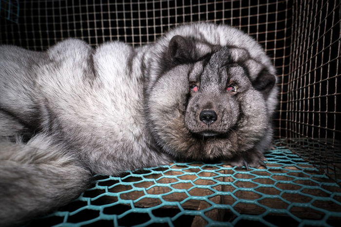 眼前的动物是狐狸,说出来您信吗?据英国《每日邮报》8月25日报道,动物组织"动物公义"近日深入芬兰博腾的5家皮草农场拍摄,见到了这些狐狸的悲惨景况。只见它们蜷缩在狭小的铁笼内,全身凸起一团团的脂肪,形同"肉球怪兽"。由于肥胖,狐狸的眼睛无法完全睁开,四肢根本支撑不了体重,只能挣扎着移动。