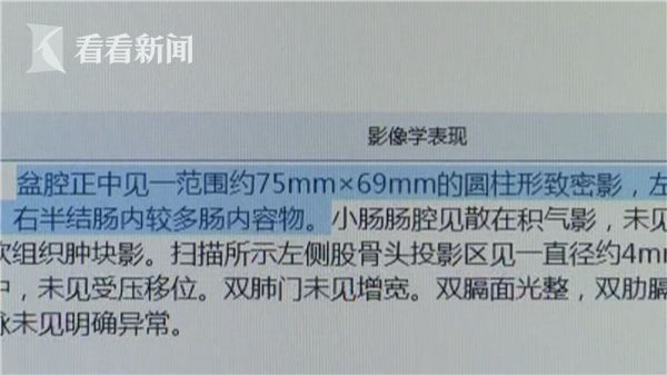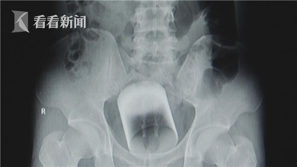 “患者腹部X光结果可以很清晰地看到盆腔正中有一个倒着的略微倾斜的圆柱形致密影,位于直肠中上段。”据接诊小张的结直肠肛门外科二区蔡永华主治医师介绍说,该异物距离肛门有近7厘米远,检查发现周围直肠黏膜正常,无水肿、出血等。