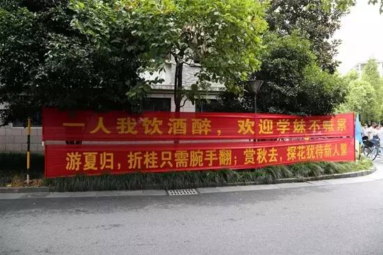 背景:在浙大紫金港校区内,各式各样的横幅悬挂在校园的显眼位置。除了激励学子砥砺奋进的标语,学长学姐们还脑洞大开,一条条搞笑却暖心的横幅让人忍俊不禁。讲真,学长学姐是很关心学弟学妹的,有什么想问的尽管问吧。