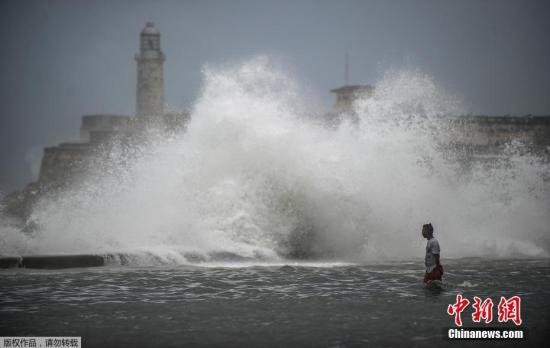当地时间2017年9月10日,古巴哈瓦那,飓风“艾尔玛”在古巴哈瓦那掀起巨浪。