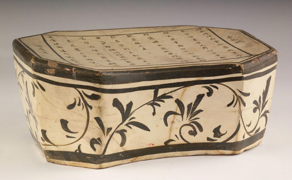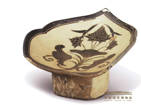 宋 磁州窑 如意头白釉黑彩莲花纹枕(中国国家博物馆藏)