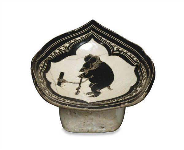 北宋 磁州窑白地剔黑熊纹枕(大英博物馆藏)