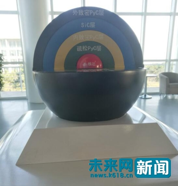 高温气冷堆采用的全陶瓷包覆颗粒球形燃料元件模型。(未来网记者 廖瑾 摄)