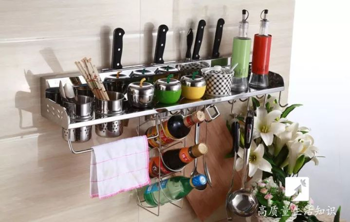 这种多功能的厨房挂件置物架最适合,既能随手取用又不会出现杂乱无章的情况。