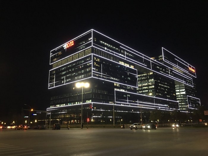 (11月11日当晚,京东总部大厦灯火通明,今晚这里将举办盛大的双十一庆功宴)