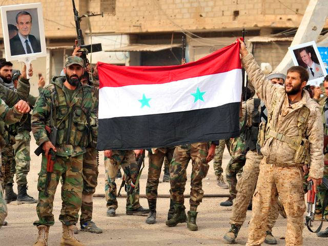 11月20日,叙利亚政府军举着国旗庆祝从“伊斯兰国”武装夺回叙东部边境重镇阿布凯马勒。(新华社发)三国峰会前,普京在索契就叙利亚问题会晤到访的叙总统巴沙尔,并同美国总统唐纳德·特朗普、沙特国王萨勒曼·本·阿卜杜勒—阿齐兹·阿勒沙特、埃及总统阿卜杜勒-法塔赫·塞西以及以色列总理本雅明·内塔尼亚胡分别通话。