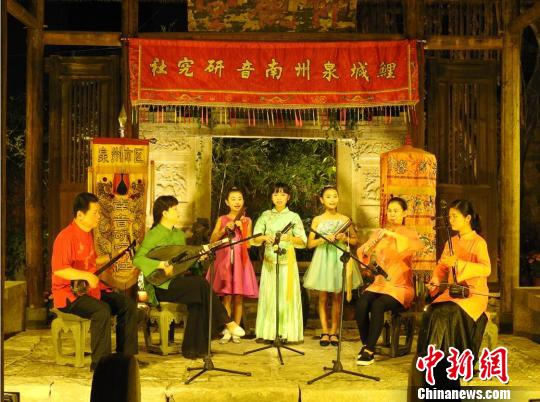 中新网泉州11月27日电 (林玲 施远圻)“古曲千年唱未休,管弦韵美出泉州……”在2017年10月底举行的福建省第二届曲艺“丹桂奖”决赛现场,泉州鲤城区泉州南音研究社的21名演员登台演奏一曲《古韵薪传》,讲述了泉州南音人世代传承的故事。该作品由福建省南音非遗传承人、鲤城区泉州南音研究社社长郑芳卉编排,不仅奏出南音之美,更是郑芳卉家族传承南音的真实写照。