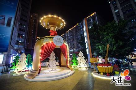 ????硕大的雪白脚印、12米高的甜蜜圣诞树、欢乐的旋转八音盒、金色的酒杯剧院以及华丽高耸的烛台,这些都是“天街圣诞巨人”的精心装点,只为给市民呈现一个奇妙又梦幻的欢乐圣诞。
