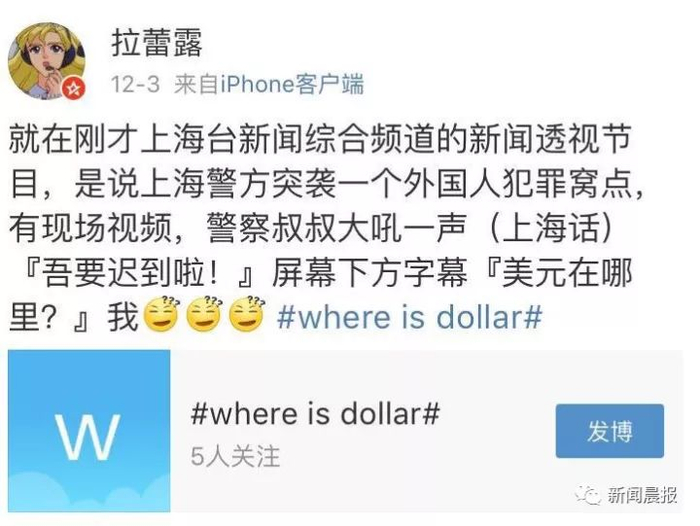 “又要迟到啦”和“where is dollar?”(美金在哪里)