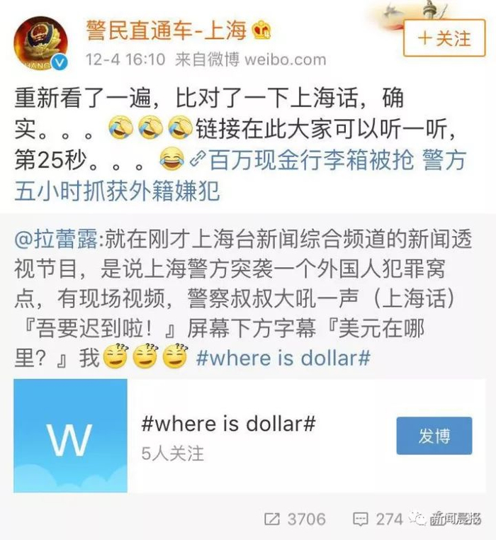 警察爷叔开英文:Where is dollar=吾要迟到啦?上海话里的英文,你值得拥有