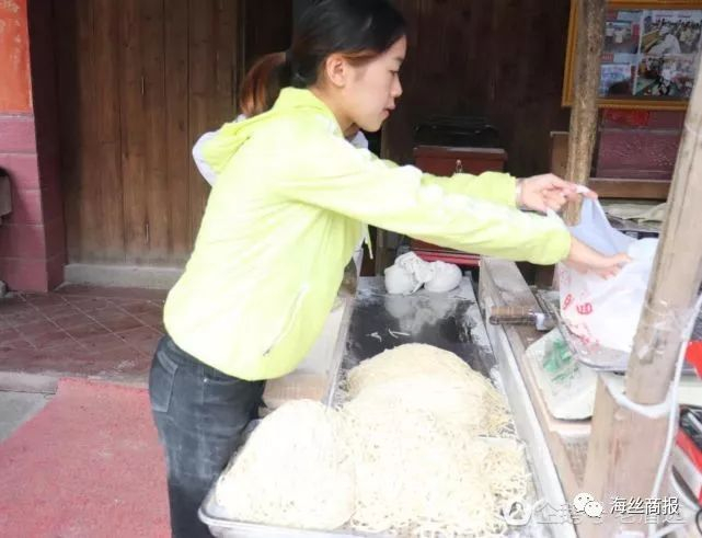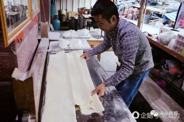 ????????郭炜兰说,这种手工面是当地的传统美食,起源于清朝,大概从她父亲的太爷爷那一代就会制作,传承到她已经是第五代了,至今有上百年历史。