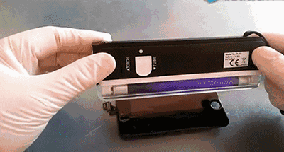 3、用紫外线灯照射屏幕10-15分钟,让胶水固化。