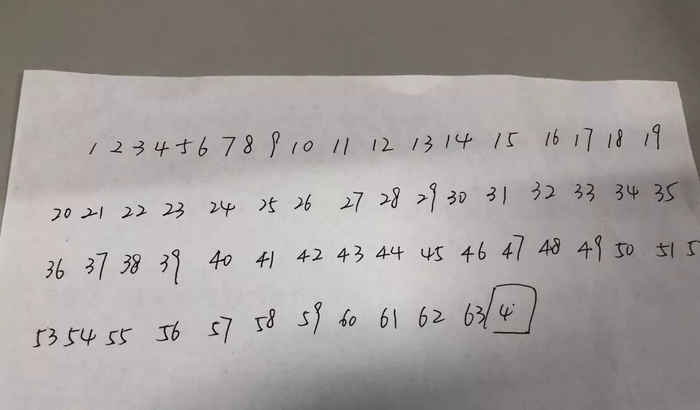 结果想写“64”,先写了“4”…