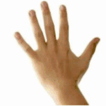 b.拇指向上,使腕关节向拇指侧(即天花板上)匀速向上屈曲,然后缓慢回到原位;