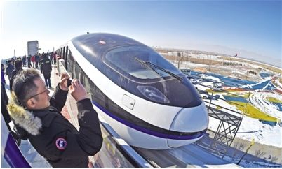 1月10日,在银川市花博园,参加体验的嘉宾在拍摄全自动无人驾驶云轨列车。 新华社记者 王鹏 摄