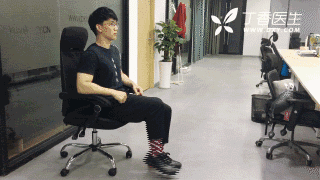 先坐稳,保持膝关节在座椅范围外。然后整条腿用力绷直并保持水平状态,同时用力勾脚尖,此时可明显感觉到大腿肌肉紧张。