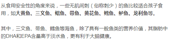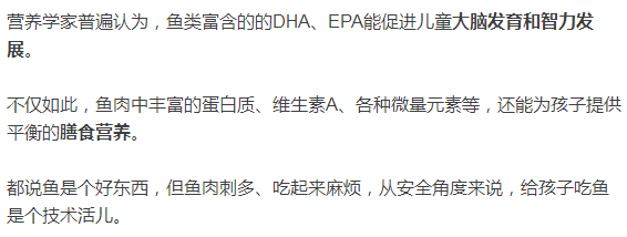 鱼腹肉:它含卵磷脂相对较高,而且软嫩鲜美,小刺少,非常适合孩子吃。