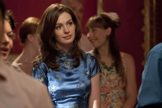 因在《穿普拉达的女王》的精彩表演而被中国粉丝熟知的安妮·海瑟薇在爱情电影《一天》里也穿上了旗袍。