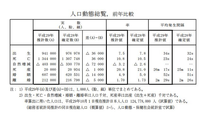 ▲2017年日本人口动态总览(日本厚生劳动省官网)
