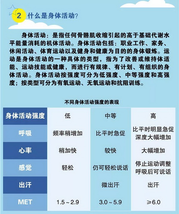 《中国儿童青少年身体活动指南》。MET为身体活动强度代谢当量的基本测量单位,1MET为安静坐位休息时的能量消耗率。