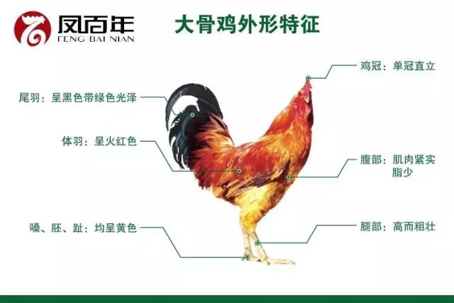大骨鸡主要特征以体大、蛋大、肉味鲜美、营养丰富而著称于世。体型较大,胸深且广,背宽而长,腿高胫粗,墩实有力,偏重产肉,为国内大型鸡种之一。